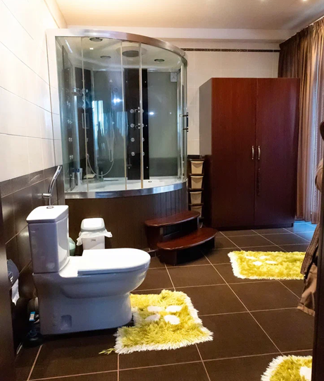 Специально для прекрасных дам на каждом из этажей 4 санузла (по 2 на каждом из этажей), ванная-джакузи, также имеется два камина.