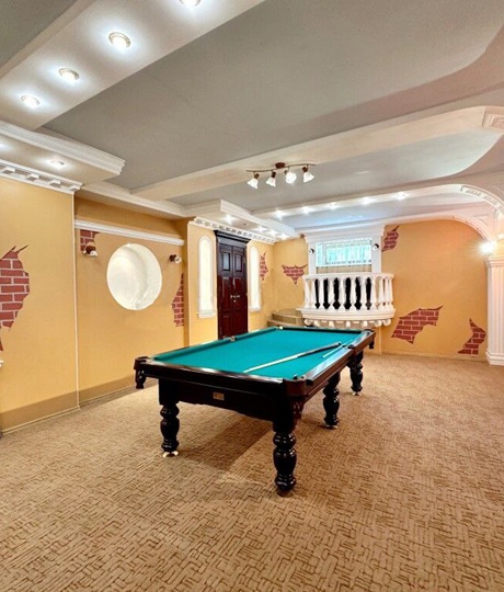 Также внутри коттеджа располагается большая по площади гостиная-столовая, винный погреб, бильярдная комната, бойлерная, гардеробная.